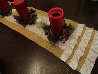 Today we spent the day crafting and doing Christmasy stuff :) I made this pretty burlap and lace table runner!